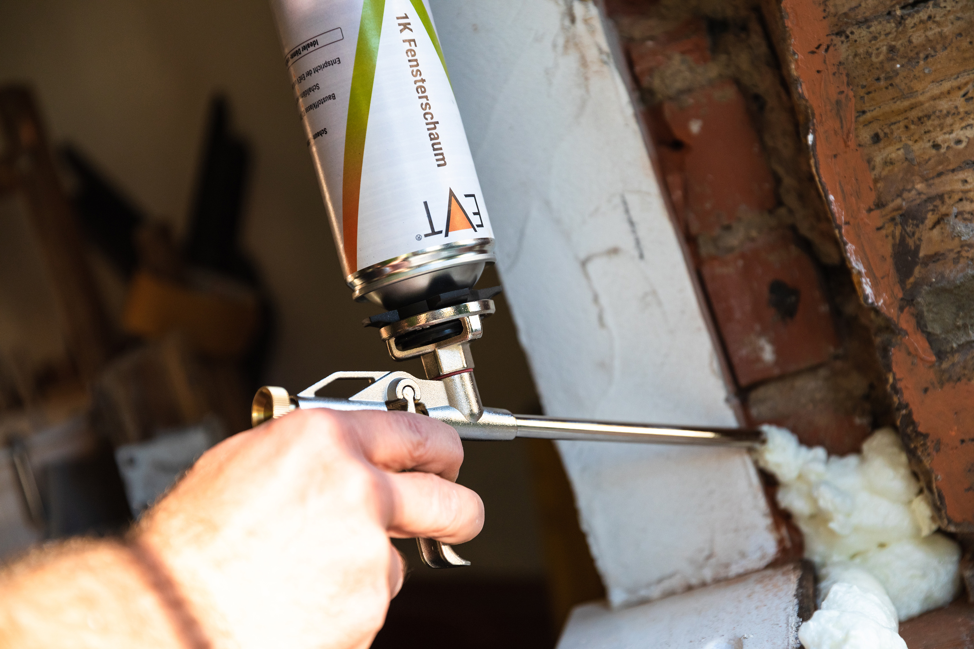 Professionelle Handwerker verwenden Montageschaum beim Einbau von Fenstern und Türen, zur Fugenabdichtung, zum Kleben und Dämmen – für sicheren Halt und maximaler Abdichtung.